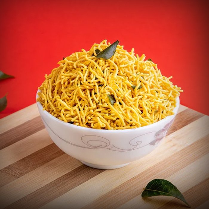 Finely Textured Delight – Made with besan (gram flour), this thin sev is fried to golden perfection.