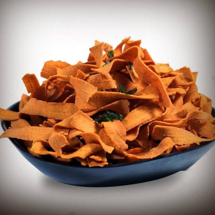 Perfectly Crunchy Ribbons – Made from a mix of rice and gram flour, deep-fried into golden, thin strips with a spicy kick.